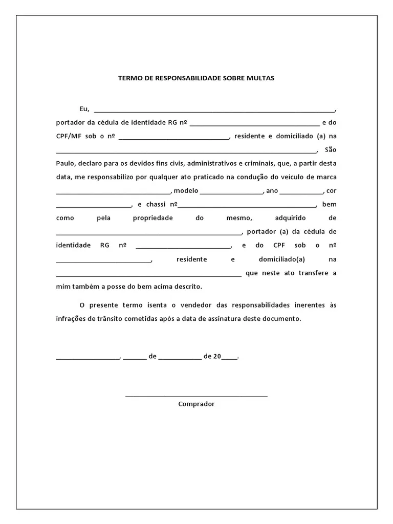 Importante: a assinatura do condutor no Termo de Responsabilidade deve ser idêntica à da CNH, garantindo a validade do documento perante o órgão autuador.