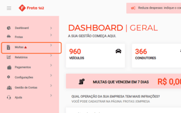 1. Clique no menu Multas.