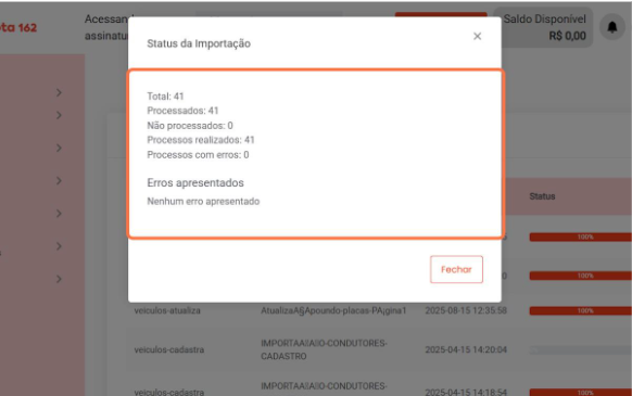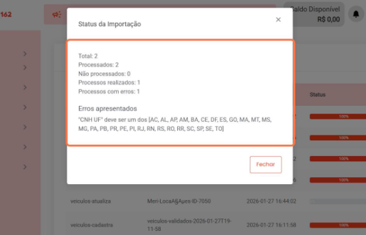 8º passo - Importe os veículos válidos