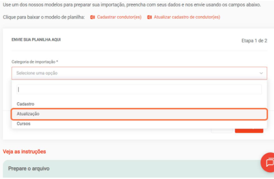 2º passo - Clique em "Atualização" na categoria de importação