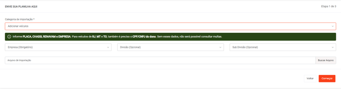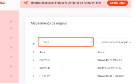 6º passo - Mapeie as colunas com as informações corretas de placa, chassi, RENAVAM e UF