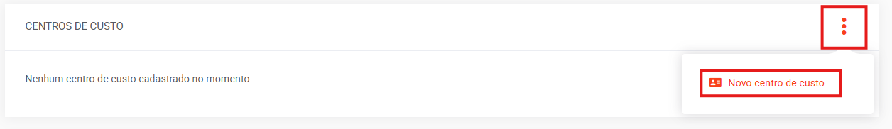 3 - Role a pagina até encontrar a Sessão "Centro de custo", clique nos "três pontinhos" e em "Novo centro de custo"