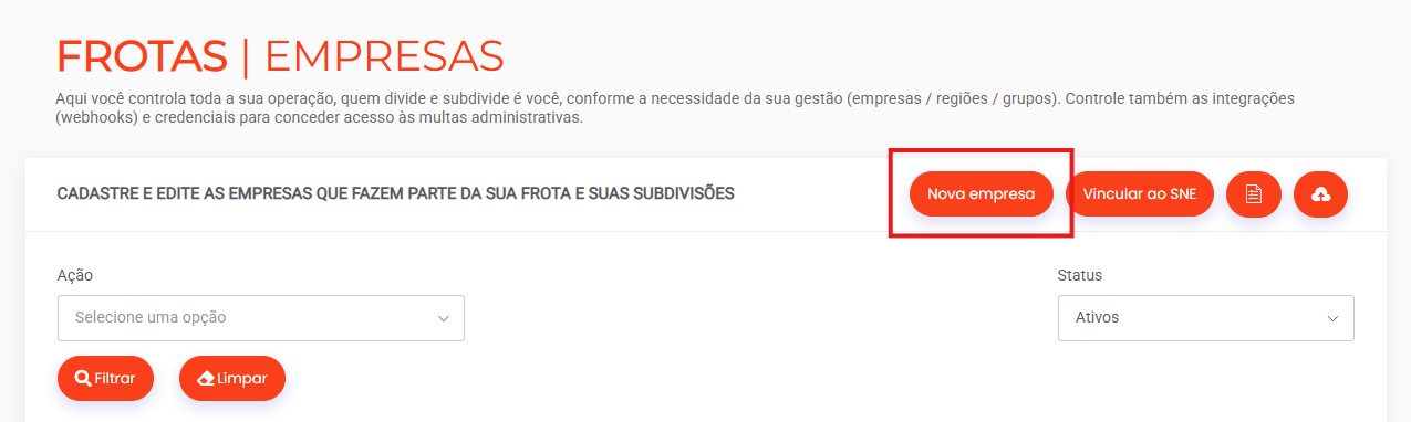 2 - Ao abrir a pagina de empresas, clique em "nova empresa":