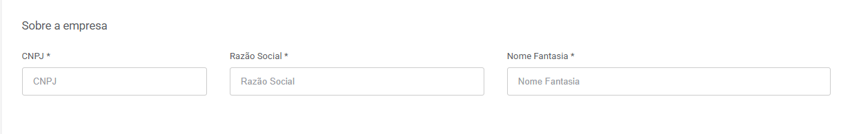 3 - Os campos obrigatórios ao criar uma nova empresa são: CNPJ, RAZÃO SOCIAL, NOME FANTASIA,