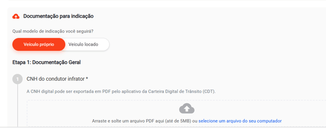 Caso seja Proprietário(a), as informações obrigatórias são: CNH ou RG, Termo de responsabilidade (Documento que te autoria a assinar uma infração em nome do condutor)