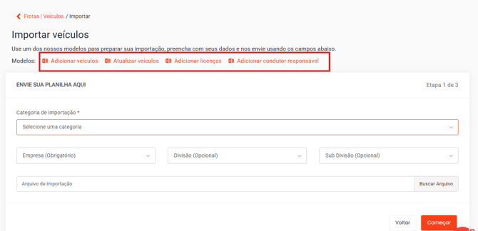3º: Caso queira, faça o download do nosso modelo para o ajudar a importar com mais facilidade, basta clicar em uma das opções: